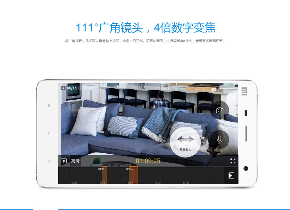720P高清分辨率 | 111°廣角,4倍變焦 | 雙向語音通話 | 紅外夜視