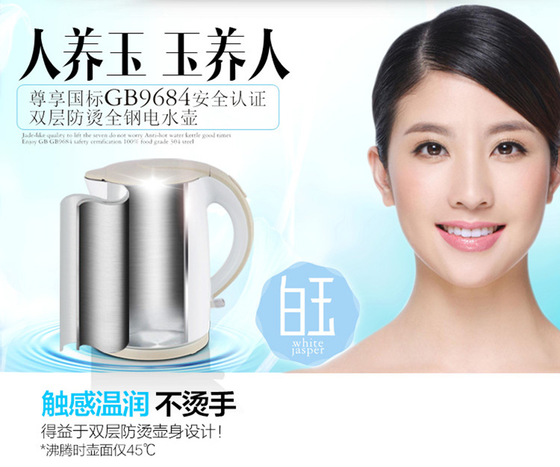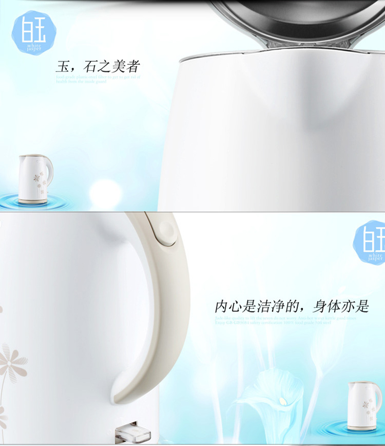 1.7L大容量滿意全家人的需求,一鍵阻尼開蓋, 可視加熱夜燈, 防燙手柄,水壺?zé)旆奖阌謱?shí)用
