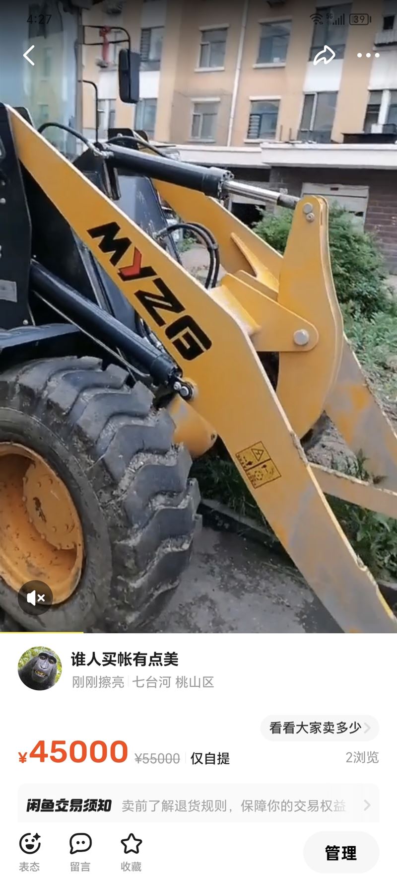 全新鏟車出售,只用4天, 由于個人原因,無暇管理,便宜出售
