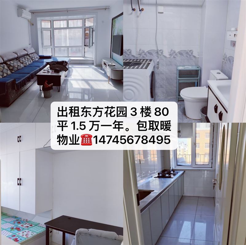 出租東方花園 3 樓 80 平 1.5 萬(wàn)一年。雙包,全新空調(diào)。電視冰箱。洗衣機(jī)。??14745678495