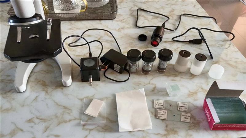 貝朗顯微鏡,640倍,帶電子顯微目鏡,電子反光鏡,配有載玻片蓋玻片吸水紙顯色卡,擦鏡紙,裝備箱,原價(jià)240,八九成新,鏡片無磨損
