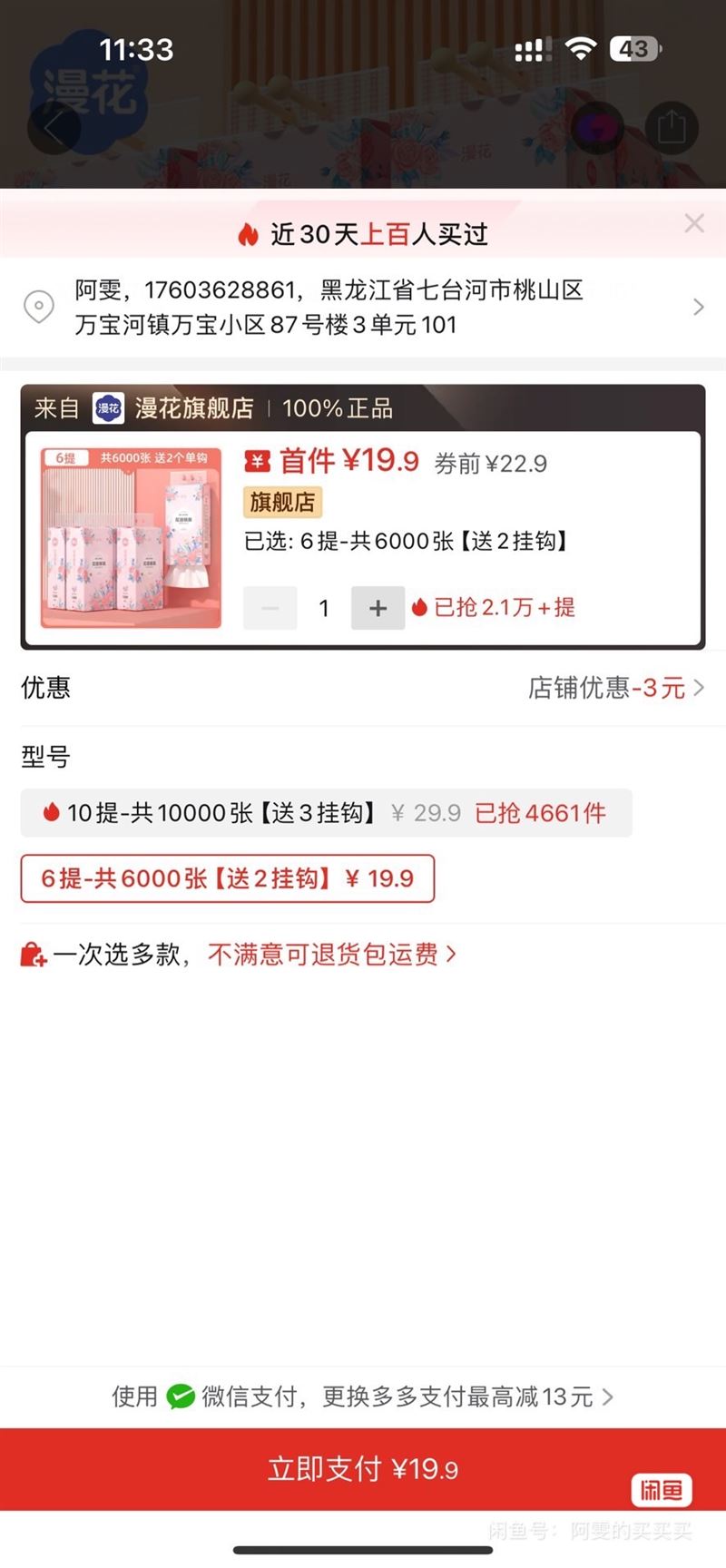 萬寶小區(qū)自取單獨漫花手提紙15元