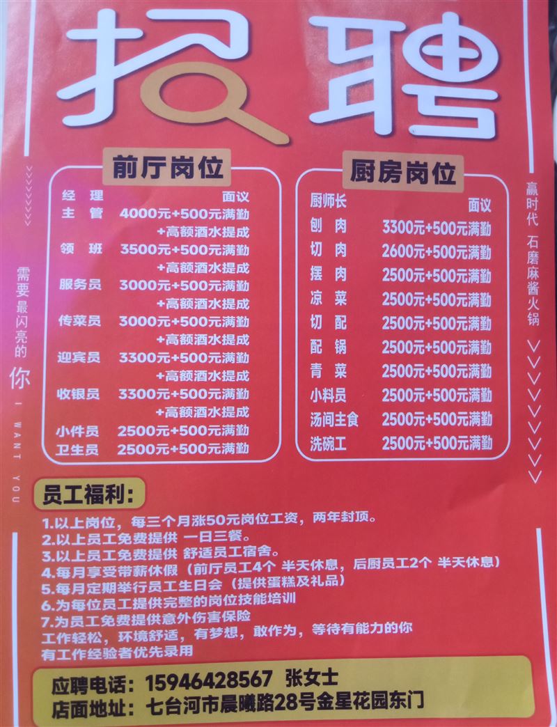 新店開業(yè),贏時代火鍋店招聘各個崗位工作人員,電話15946428567