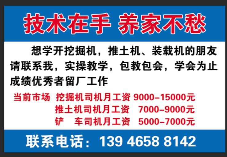 找工作難不如學(xué)一門技術(shù)養(yǎng)家。如果你想學(xué)開挖掘機(jī),裝載機(jī),推土機(jī)請(qǐng)聯(lián)系我們!