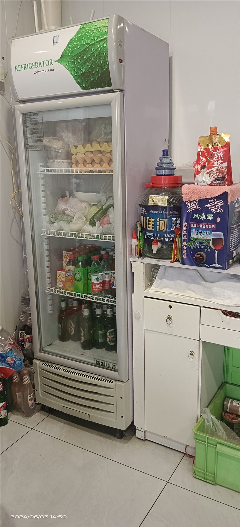 設(shè)施齊全,大冰柜一個,展柜一個,上面是冷藏下面是冷凍兩個,消毒柜一個,醬湯罐一個,大不銹鋼桶兩個,小不銹鋼桶好幾個。桌子,凳子,三用的灶子
