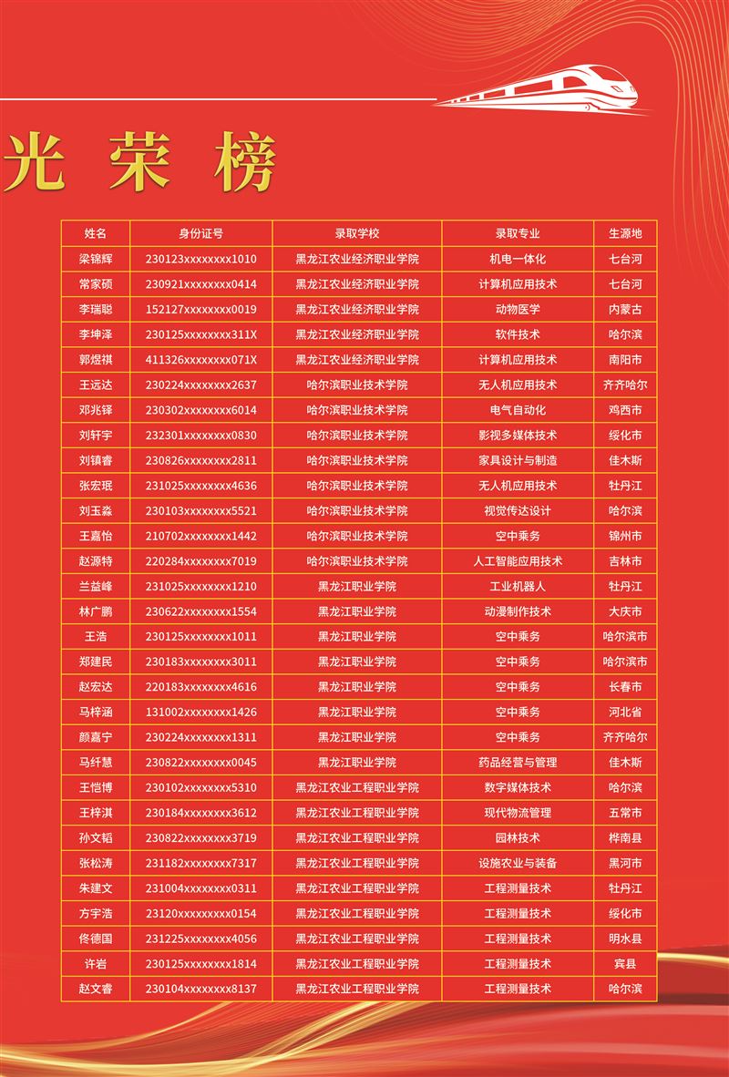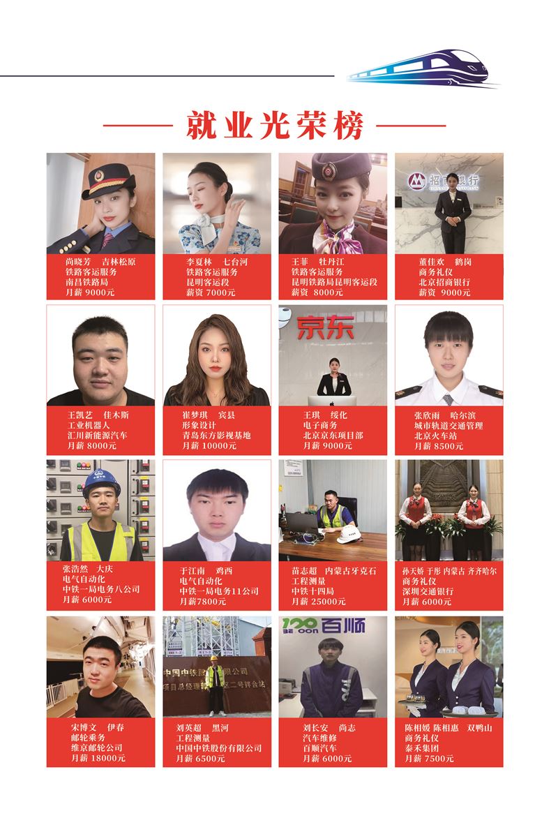 哈鐵道面向全市初中同學(xué)招生,高考成績(jī)不理想,考不上重點(diǎn)高中的。學(xué)習(xí)成績(jī)不好,想找份兒工作。中專,大專,本科都可以來(lái)我學(xué)校。入學(xué)即簽訂就業(yè)協(xié)議。中國(guó)50多家鐵路央企國(guó)企部門學(xué)費(fèi)低。